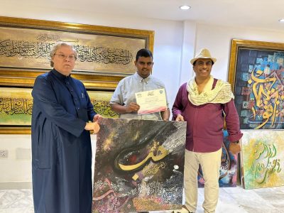 اقام النادي الادبي الثقافي بجدة ممثلا في منتدى الفنون البصرية ورشة في مجال الخط العربي بعنوان “التشكيل بالخط العربي ” قدمها معلم الخط العربي في الحرم المكي الشريف ابراهيم العرافي بمشاركة الخطاط سعود خان وحضور الخطاط عبدالمجيد الاهدل والفنان فايز الحارثي حيث اقيمت الورشة بغاليري “عزف الحروف” بمركز ادهم للفنون .