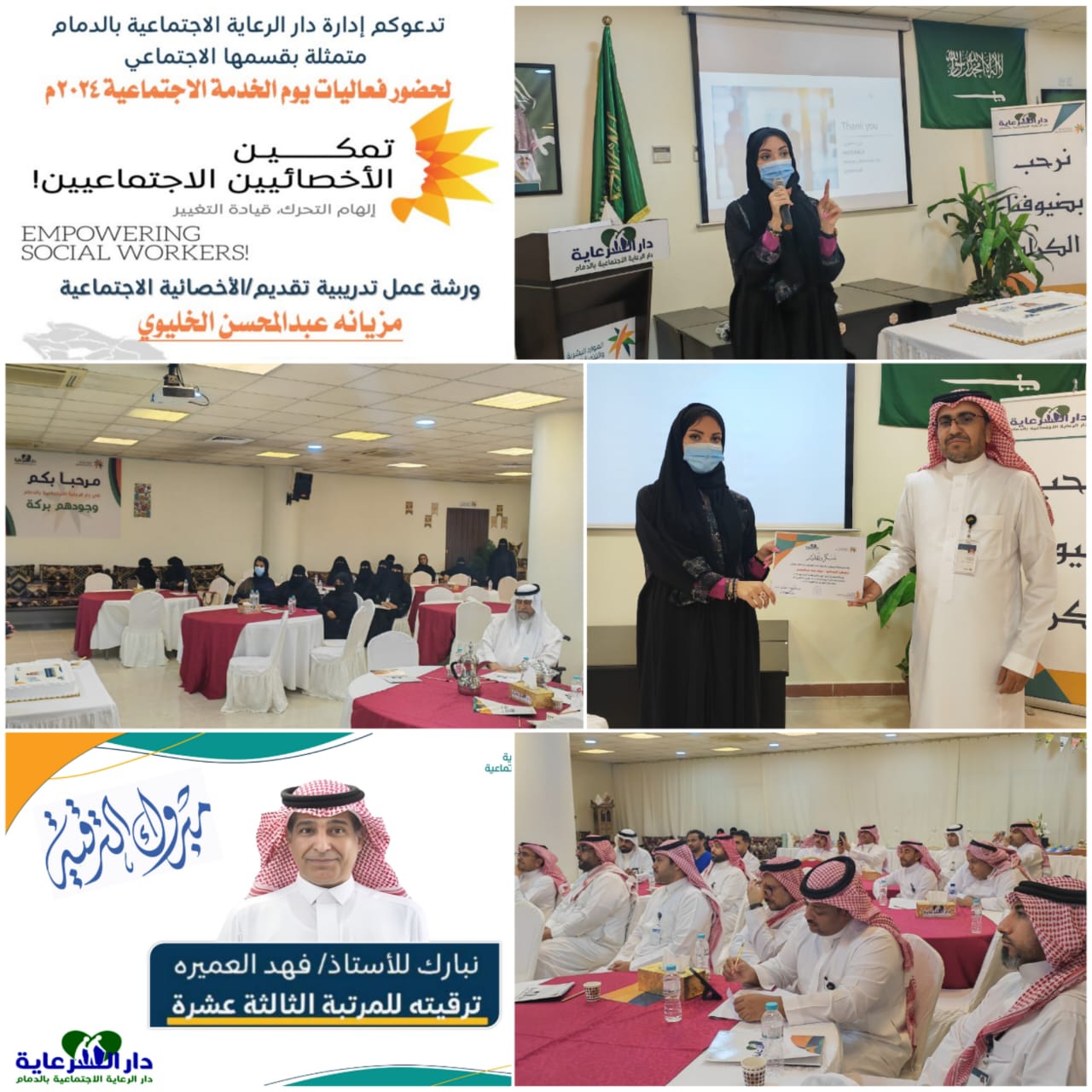 أقيمت بدار الرعاية الاجتماعية بالدمام التابعة لفرع وزارة الموارد البشرية والتنمية الاجتماعية بالمنطقة الشرقية فعاليات اليوم العالمي للخدمة الاجتماعية 2024م
