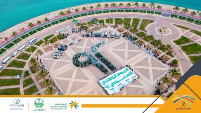 1000 متطوع يصممون تشكيلا بشرياً في ” لوحة وطن٢ ” على مساحة 2500 متر بواجهة الخبر