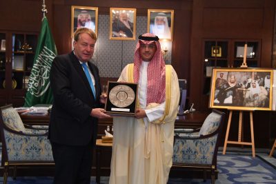 وفي بداية الاستقبال رحب سموّه بالسفير الالماني ، متمنيًا له طيب الإقامة في المحافظة ، وتبادل سموّه مع السفير الالماني الأحاديث الودية، وبحث الموضوعات ذات الاهتمام المشترك .
