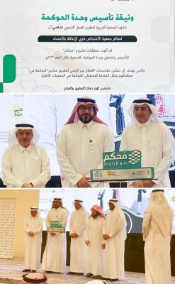 من جانبه؛ أعرب سعادة الدكتور “السعدون” عن فخره واعتزازه لكون الجمعية واحدة من بين العشرين جمعية التي تم تخريجها ضمن مشروع مُحكم، مؤكدًا سعادته بأن الجمعية وضعت نصب عينيها تبني حوكمة عملياتها ضمن توجهاتها الاستراتيجية؛ ولذا قامت بتحويل الحوكمة إلى سلوك وعمل يومي يُمارس من قبل جميع المستويات الإدارية بالجمعية.