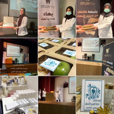 تفعيلًا لأسبوع صحة الفم والأسنان نفذت مؤسسة رعاية الفتيات بالاحساء بالتعاون مع مجمع البهاء الطبي برنامجًا توعويا ،وذلك بالتنسيق مع الجهتين من قبل مسؤولة العلاقات العامة والاعلام أماني الهليل ونظم هذا البرنامج مسؤولة القسم الصحي حصة المحيسن حيث تم استقبال الفريق الطبي المرشح من قبل المجمع في مسرح المؤسسة وإقامة البرنامج الذي بدأ بمقدمة عن العناية الصحيحة بالفم والأسنان من قبل الدكتورة فاطمة الميهان ثم تطرقت الدكتورة أروى المحمد علي إلى ذكر الفرق بين الخيط العادي والخيط المائي وذكرت الآثار السلبية لعدم التعويضات السنية ثم تناولت الدكتورة زينب البوناقة الحديث عن التركيبات السنية والحشوات وأنواعها