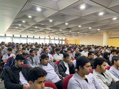 وذلك بحضور عميد الكلية المهندس ناصر بن سعيد آل زيدان، ووكيل الكلية لشؤون المتدربين الأستاذ محمد ردعان الشهري ورؤساء الأقسام وعدد من المدربين ومشرفي التخصصات وجمع كبير من المتدربين المستجدين .