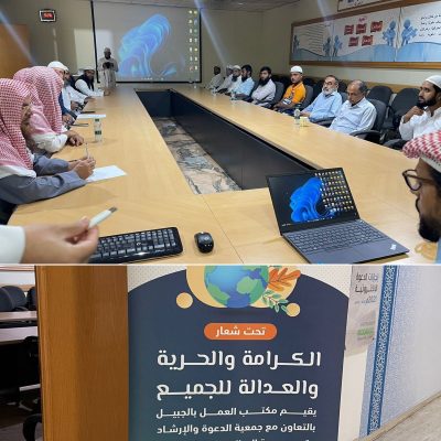 أقام مكتب عمل الجبيل بالتعاون مع جمعية الدعوة والإرشاد وتوعية الجاليات بالجبيل يوم الخميس ورشة عمل بمقر جمعية الدعوة بعنوان (حقوق العاملين بنظام العمل السعودي) بمناسبة اليوم العالمي لحقوق الإنسان
