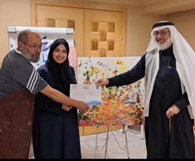 اقام النادي الادبي الثقافي بجدة ممثلا في منتدى الفنون البصرية ورشة تشكيليه بعنوان “التلقائية في العمل التشكيلي” قدمها الفنان التشكيلي فائز الحارثي ابو هريس على مدى اربعة ايام وبمشاركة حوالي ثلاثون فنانة تشكيليه وفنان وحول الورشة يقول الفنان فايز الحارثي : في هذه الورشة تطرقنا لموضوع التلقائية في العمل التشكيلي وكيفية إتمام العمل واخراجه كمنجز تشكيلي يحاكي واقعنا وتراثنا وموروثنا بصوره معاصره ، لان التلقائية هو المحرك الفلسفي للرؤية البصرية والهروب من القيود وإطلاق الإبداع في المنجز , واحب اشكر رئيس النادي الادبي الدكتور عبدالله عويقل السلمي على اهتمامه ودعمة للفنون التشكيلية وفتح النادي للنشاطات التشكيلية من ورش وندوات ومعارض ومسابقات , وهذا يدل على اسبقية نادي جدة الادبي في الاهتمام بالفنون التشكيلية.